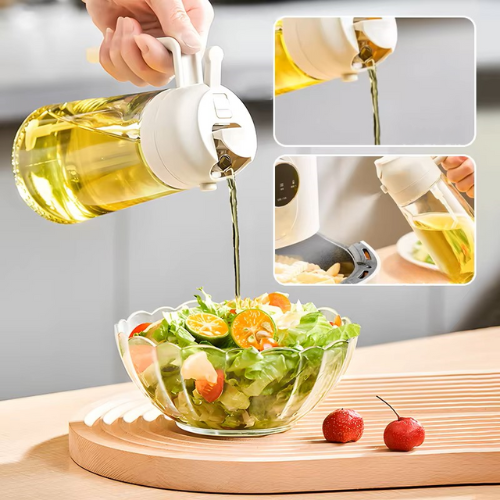 【Funcionalidade de spray e despejo 2 em 1】 Nosso dispensador de óleo para cozinha apresenta um design de função dupla, atende a várias necessidades de cozimento com a conveniência dos recursos de spray e despejo, economizando espaço valioso na cozinha.