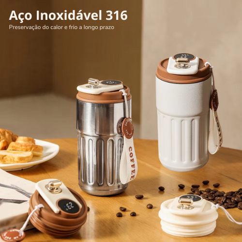 • Análise Garrafa térmica inteligente display led temperatura copo de café 316 aço inoxidável caneca